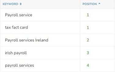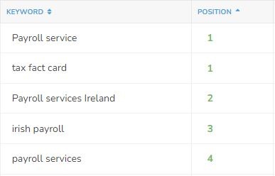 To the right is an example of some highly competitive keywords that we helped a local payroll management company rank for. The goal was to have each of the following on the first page of Googles results for each search query.