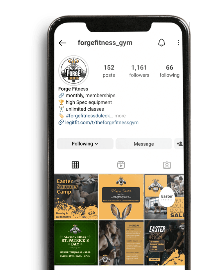 To the right is an example of an initial social platform set-up and branding. Forge Fitness Gym wanted to reach new audiences and make more people in their local area and promote their latest deals and offers.